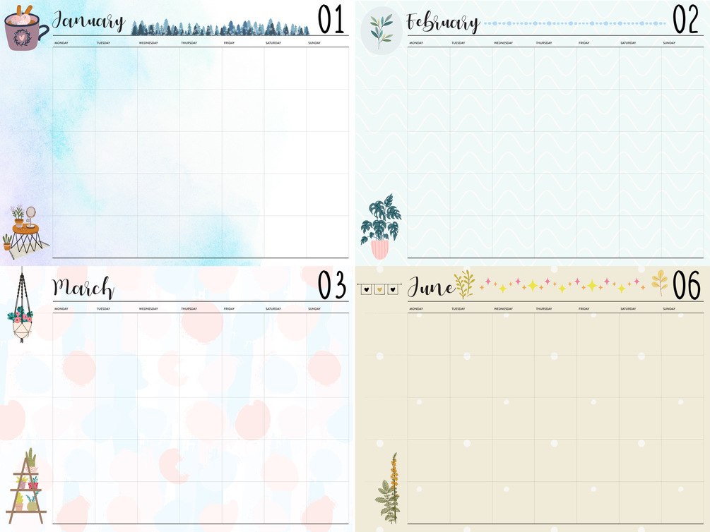 5. 12 months monthly calendar pages