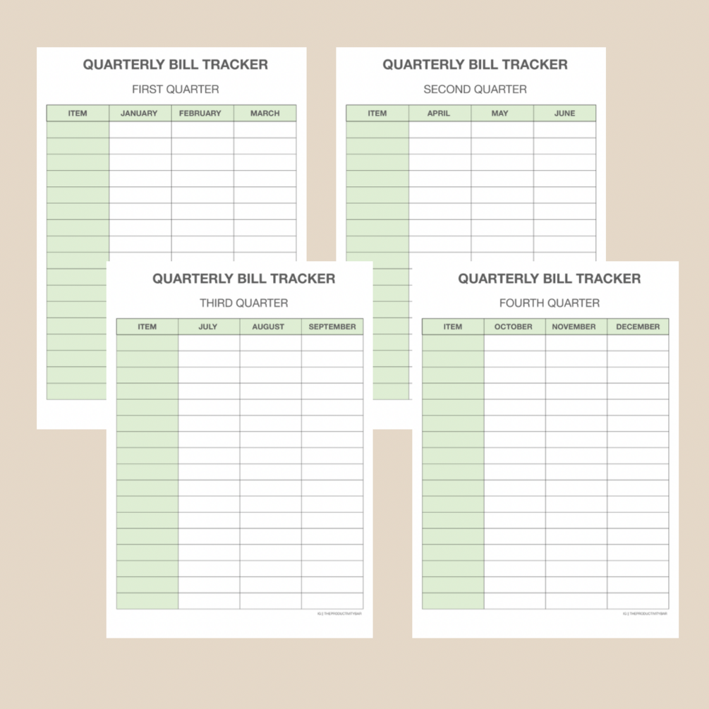 5. Quarterly bill tracker * 4 pages (one for each quarter)