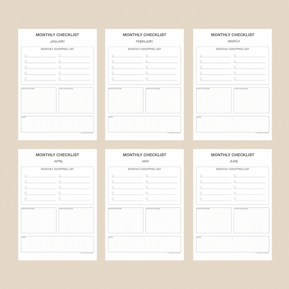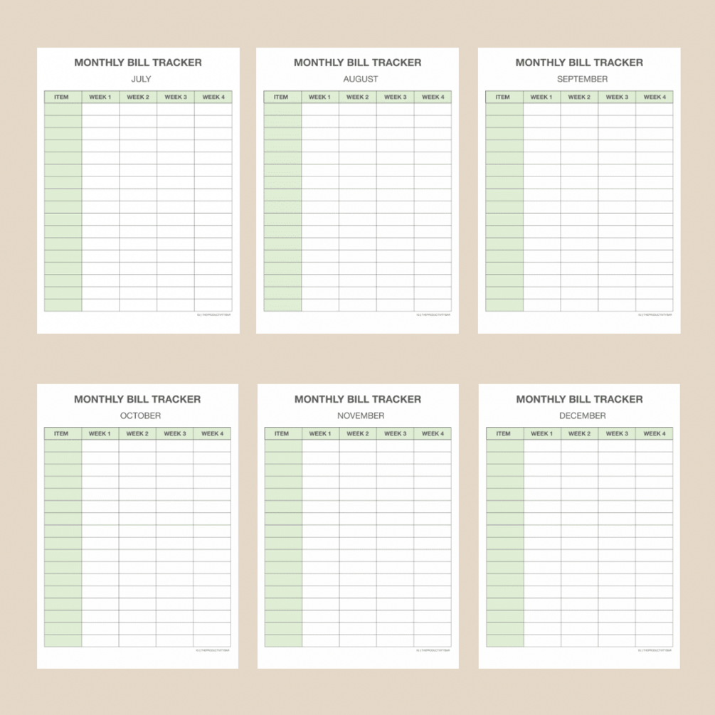 5. Quarterly bill tracker * 4 pages (one for each quarter)